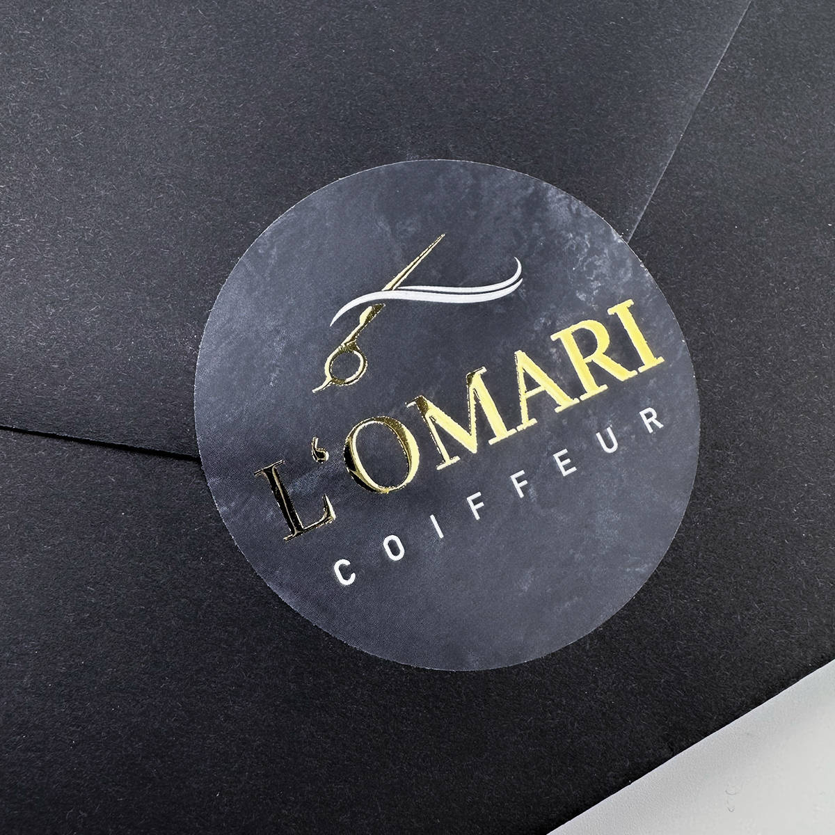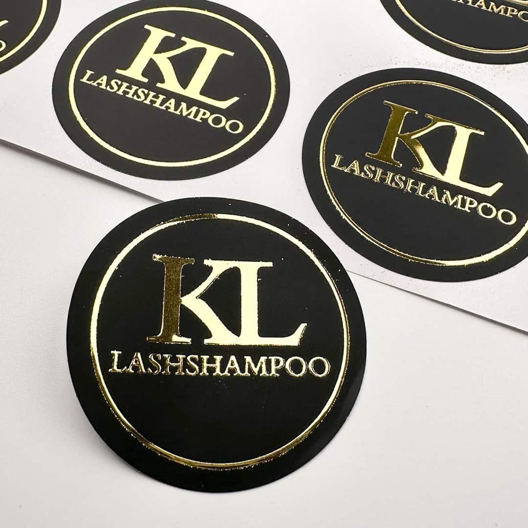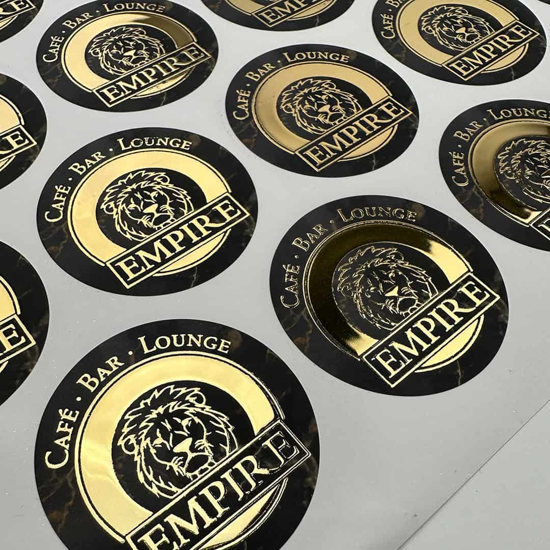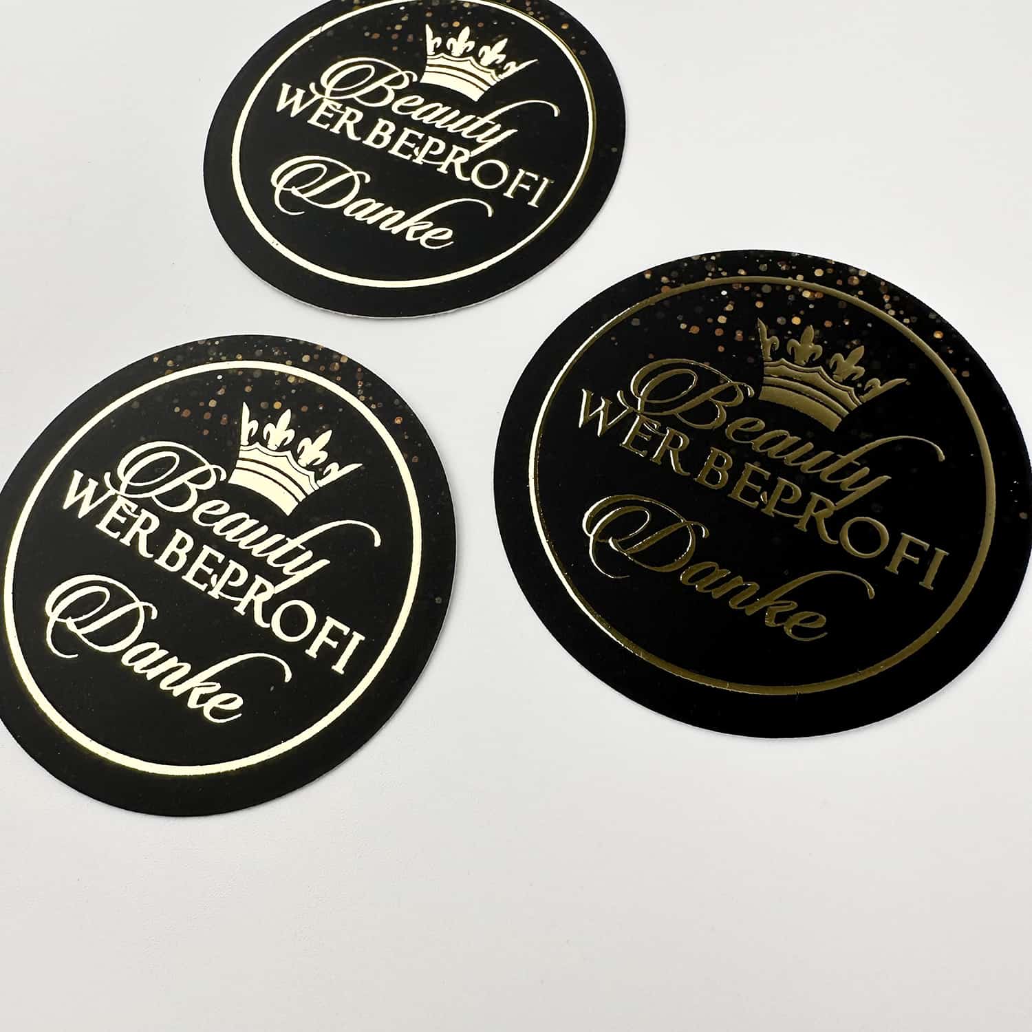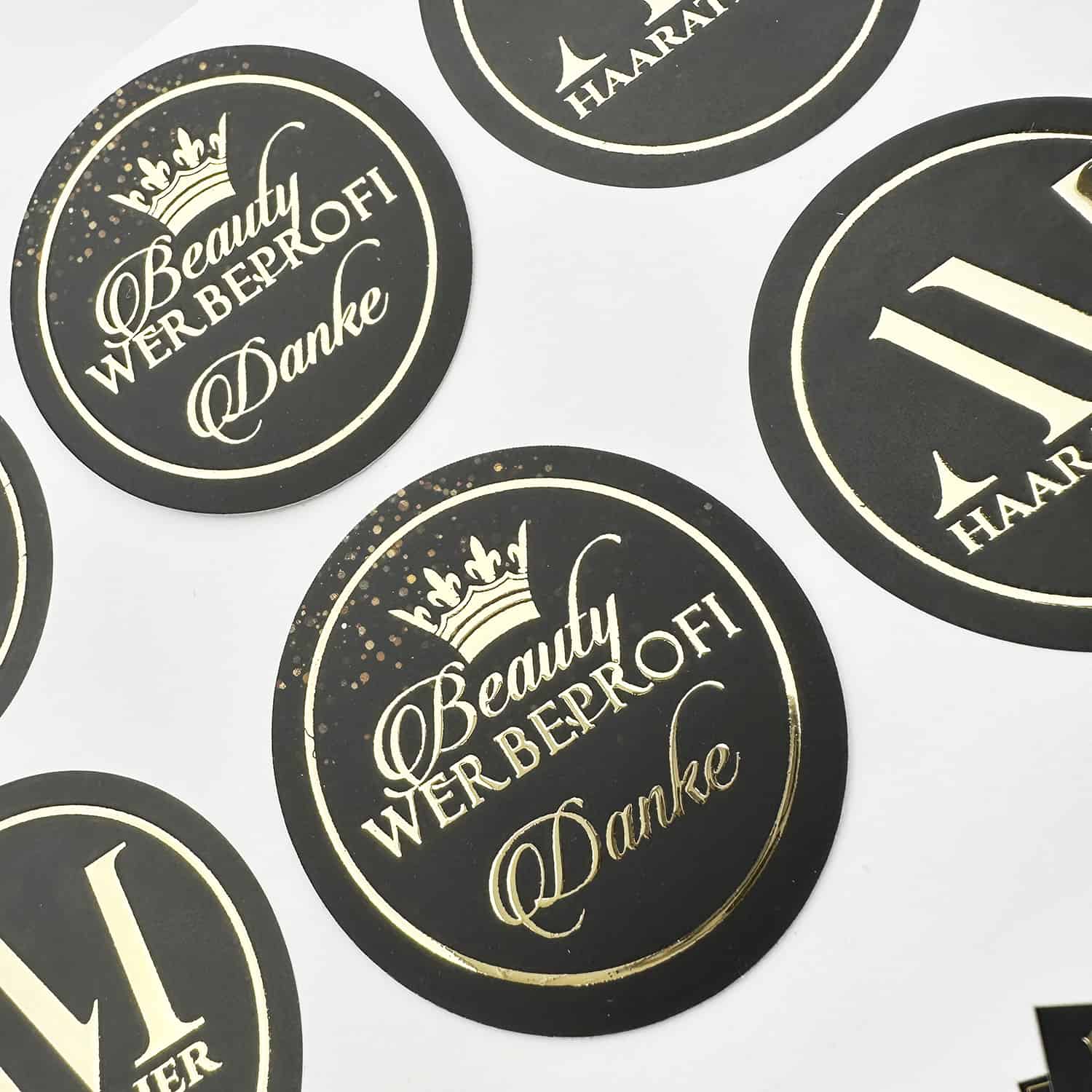 Aufkleber in deinem individuellen und luxuriösen Design – VEREDELUNG MIT HOCHGLANZ GOLD  – ideal für Pakete, Gutscheine, Produkte oder Einladungen oder Danksagungen.