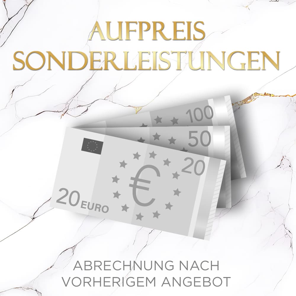 Individuell – vorab vereinbarter Aufpreis – für z.B. Änderung des Produktes, größere Stückzahl, Expressversand etc.