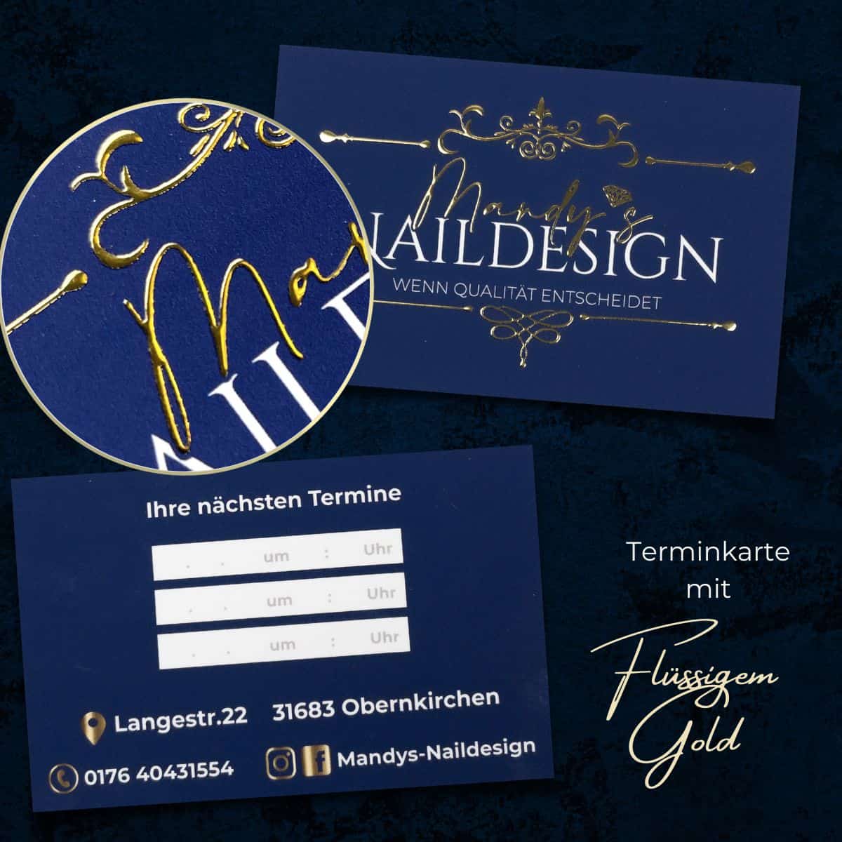 Damit sich deine Kundin oder dein Kunde den Termin gut merken kann, bieten wir dir im exklusiven und eleganten Design unsere edlen Terminkarten Gold Veredelung an.