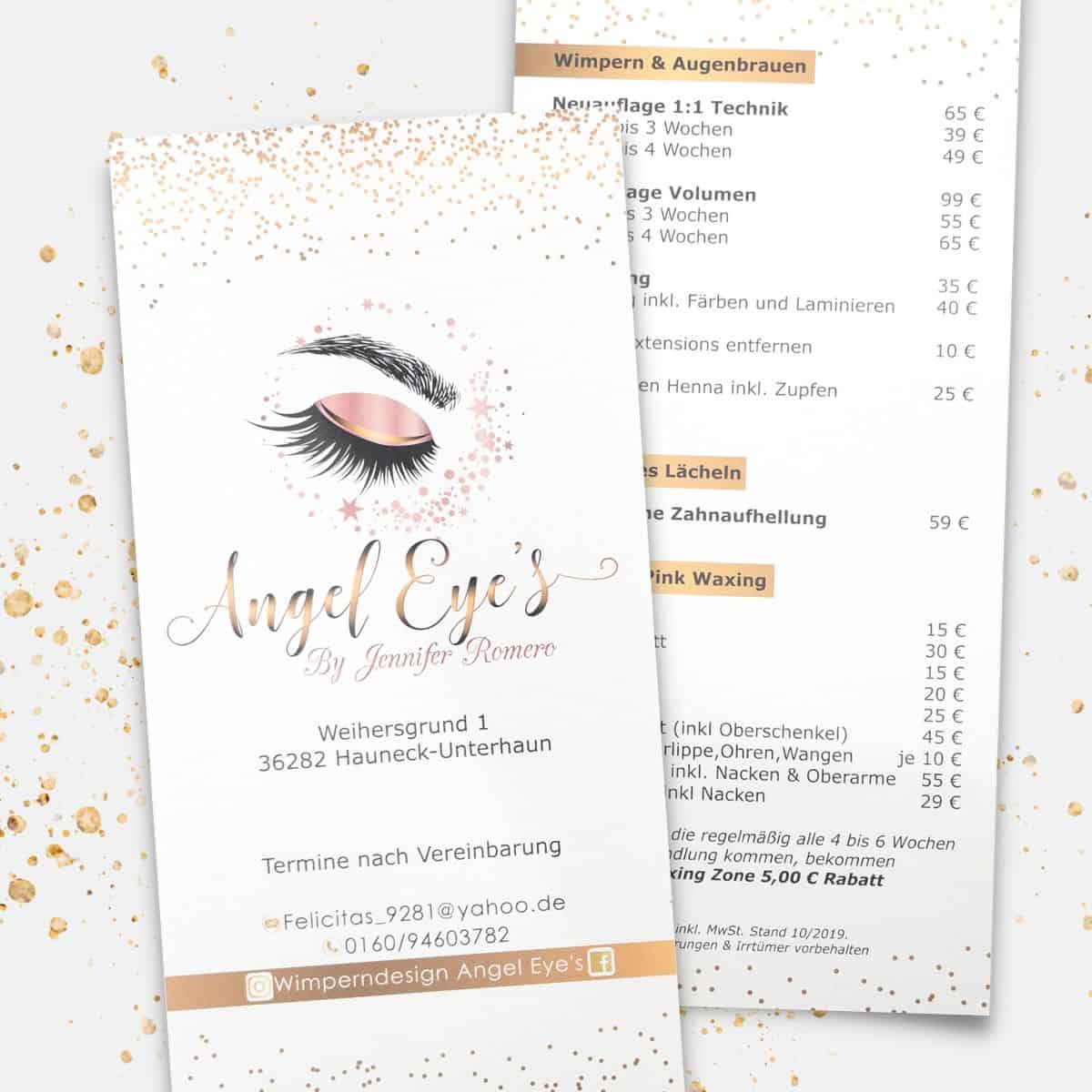 Auch die Informationen bezüglich deiner Behandlungen zur dauerhaften Haarentfernung oder Zahnaufhellung werden durch diesen exklusiven Hochglanzflyer schnell bekannt gegeben und deinen Bekanntheitsgrad wird sich rasant erweitern. Gönne auch dir etwas Glanz und entscheide dich für unsere exklusive Variante. Wir unterstützen dich sehr gerne!