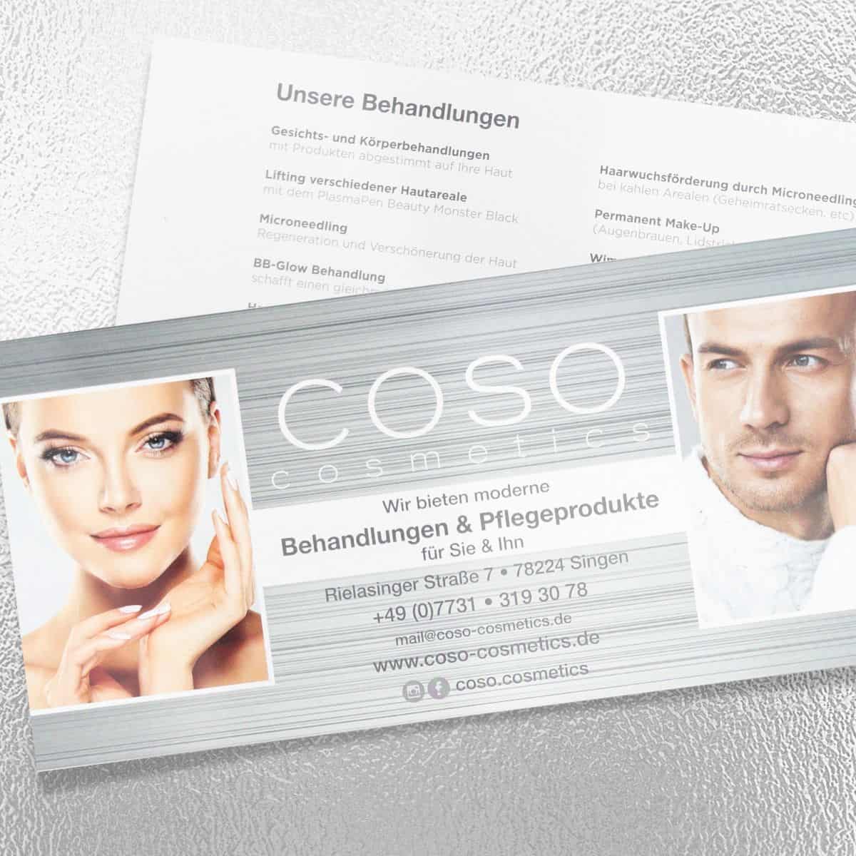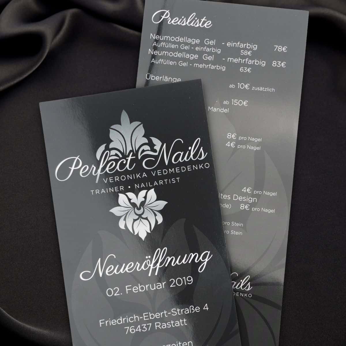 Eine Freude für die Augen und die Haptik sind hier besonders aussagekräftige Argumente. Durch das mit dir erstellte individuelle Design der Vorder- und Rückseite werden hier alle deine wichtigen Informationen an den Interessenten weitergegeben, so dass du ihn bald als Kunden in deinem Studio begrüßen wirst.