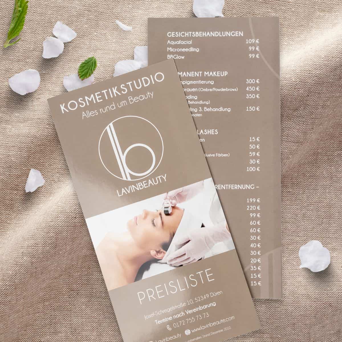 - 2-seitige Infoflyer/Preisliste in DINlang Format