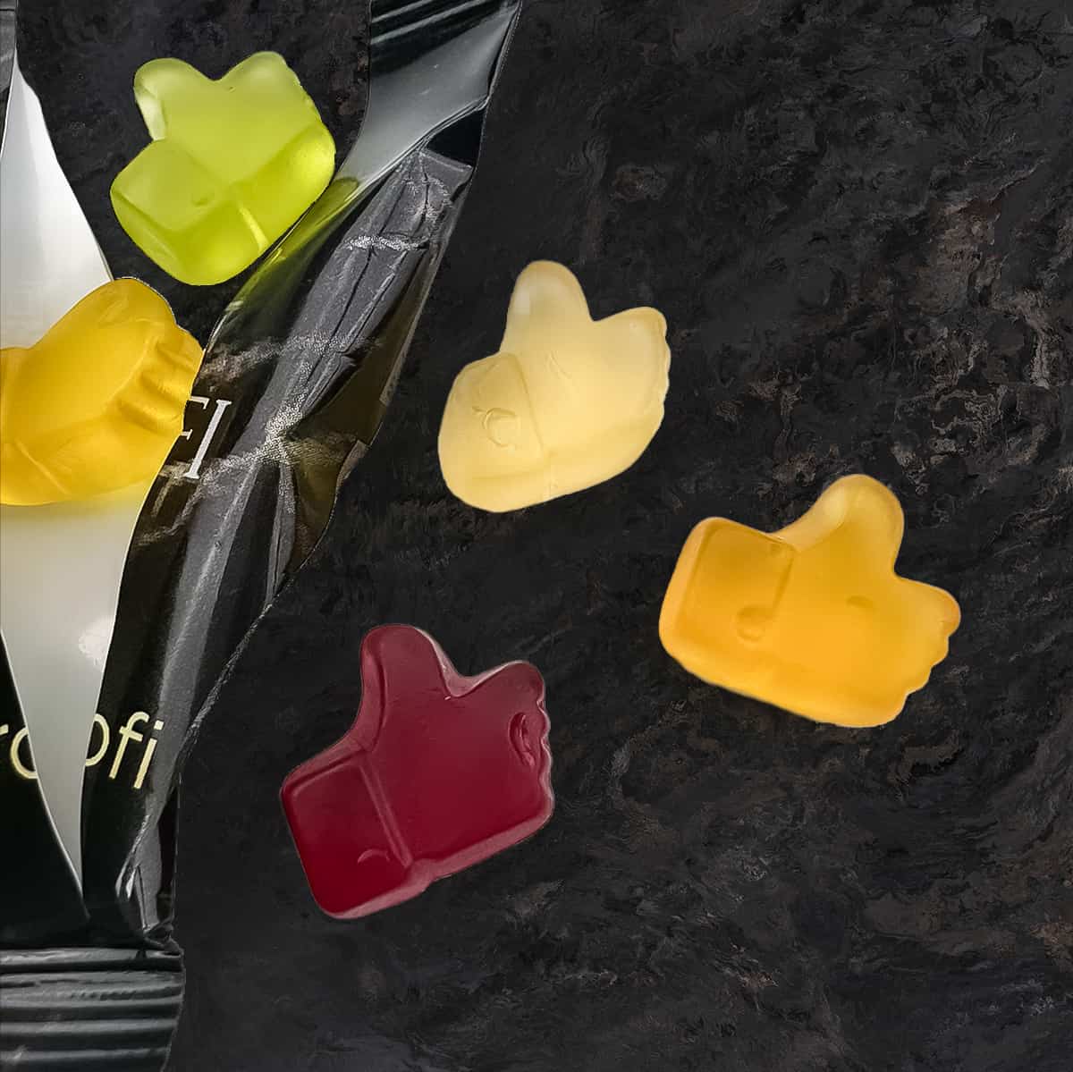 - Fruchtgummi in „Daumen hoch“ Form