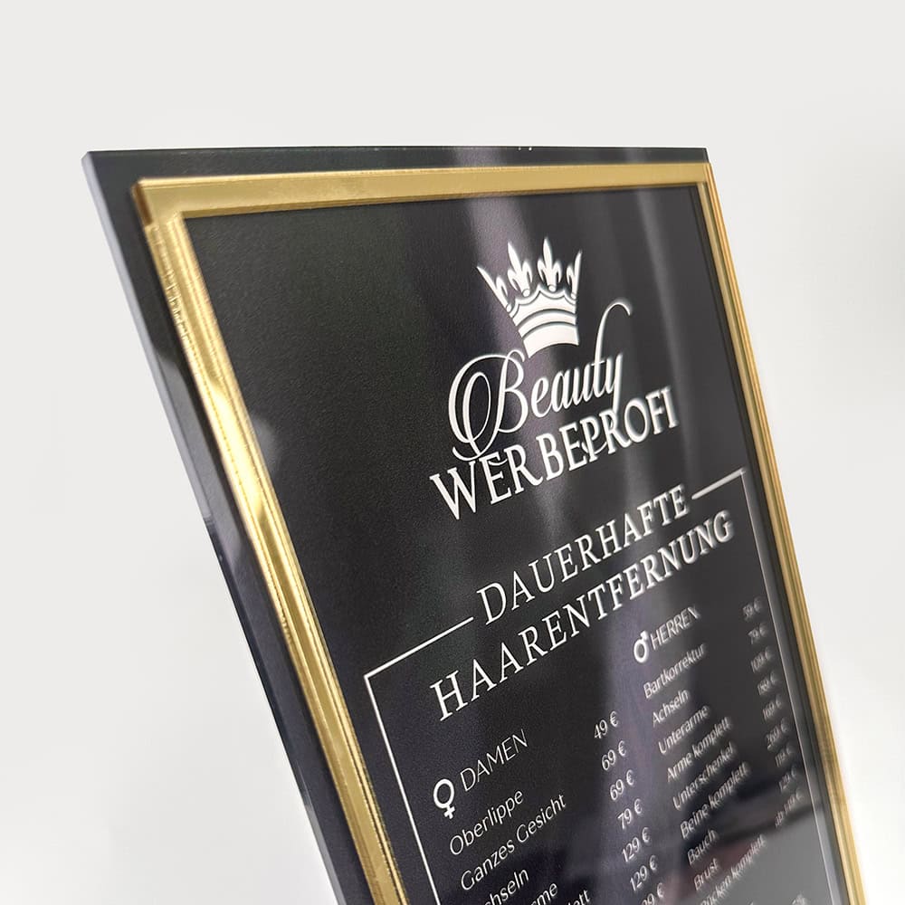 Einsetzbar: Spiegel, Glas, Plexiglas, Metall, Dibond uvm.