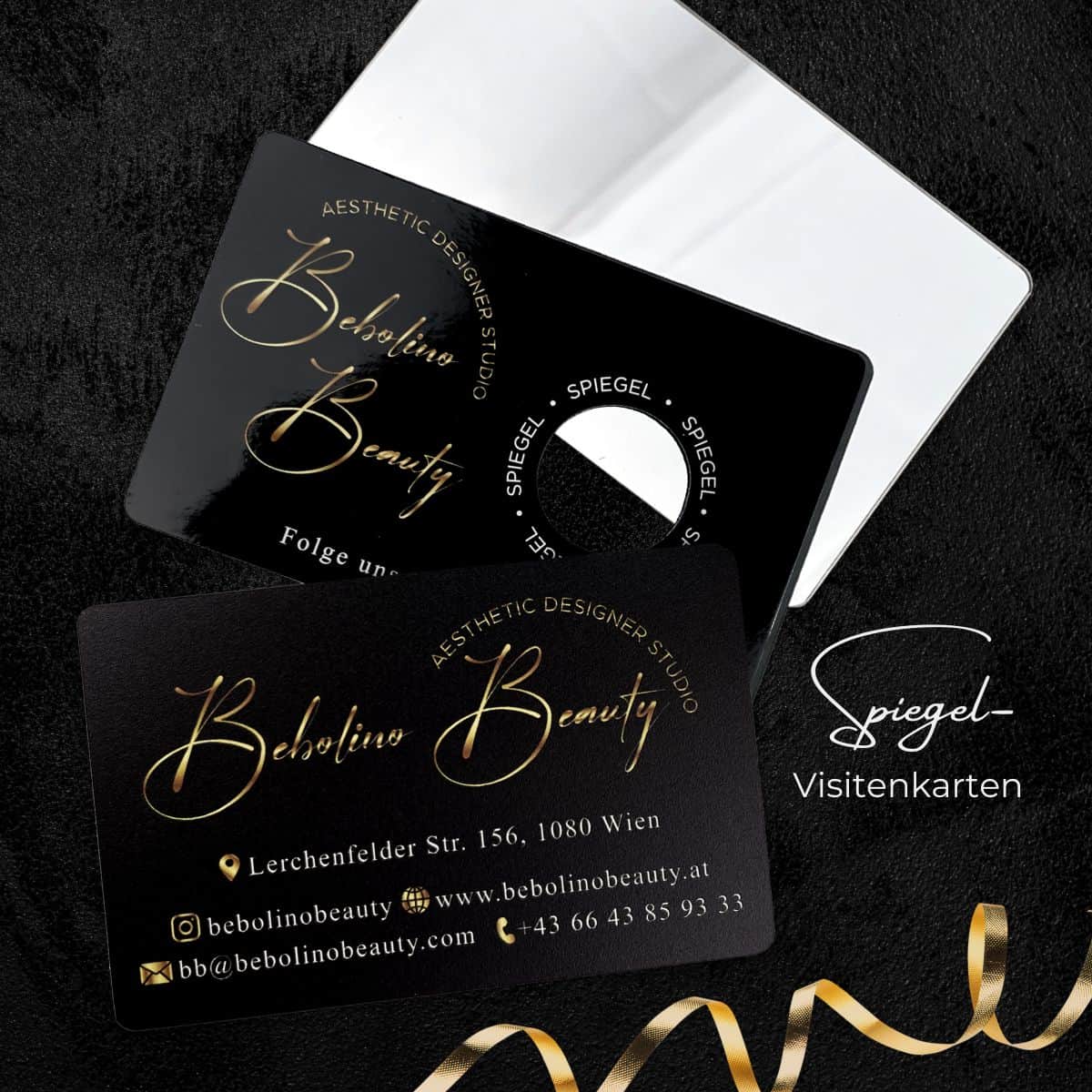 Hochwertige Spiegel-Visitenkarten für besondere Akzente: