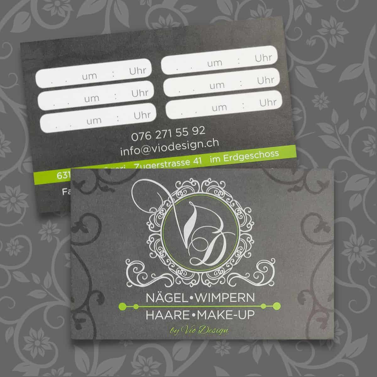 - individuell erstellte Terminkarte und Bonuskarte beidseitig bedruckt und durch die Veredelung besonders edel