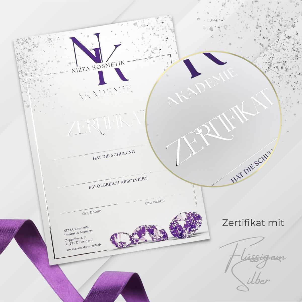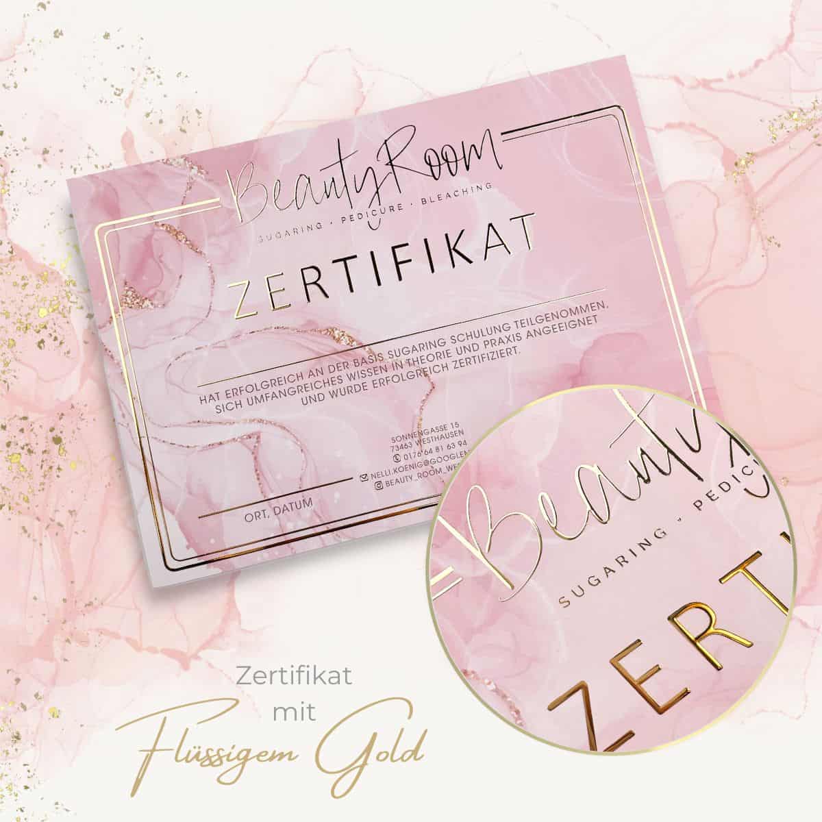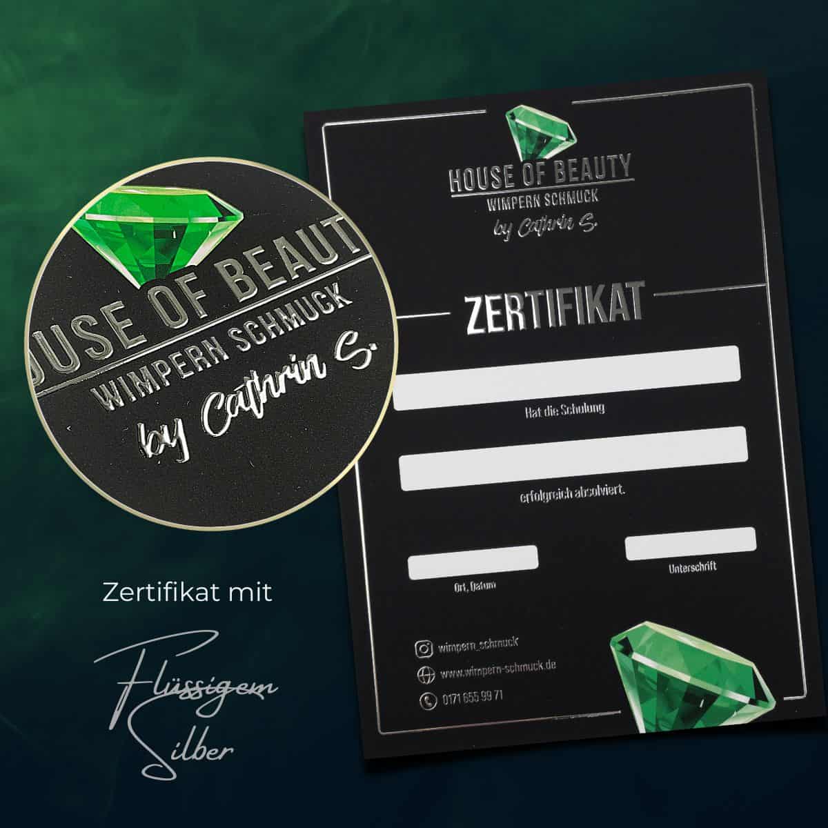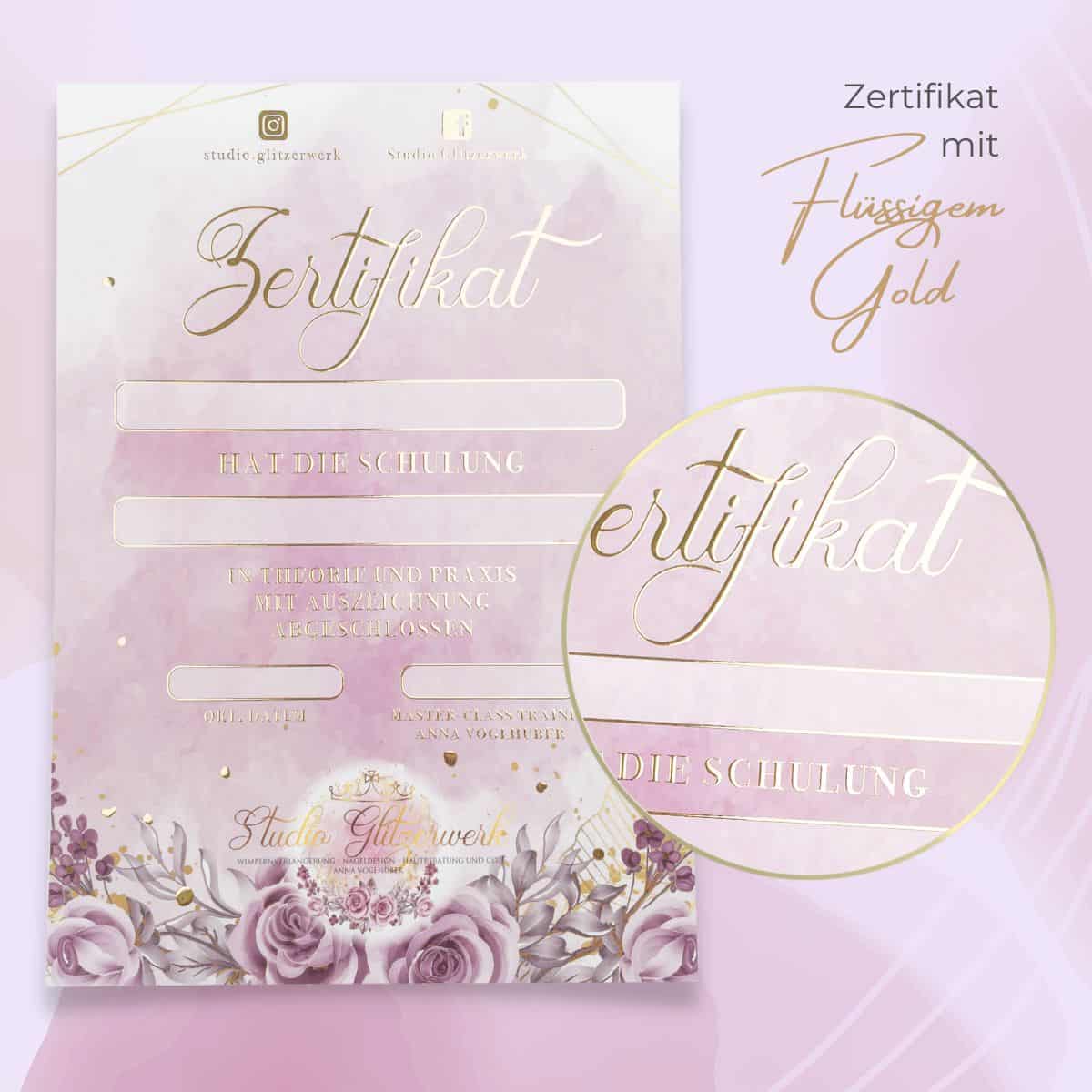 Wir empfehlen dir die Beschriftung deines Zertifikates mit der Hand. Gepaart mit deiner einzigartigen Handschrift und deinem individuellen Beautylogo entsteht ein einmaliges, glamouröses Zertifikat. Solltest du dich für das Drucken der Teilnehmerdaten entscheiden wollen, beachte bitte, dass es sich um einen Laserdrucker handeln muss, der mindestens 300gr starkes Papier einziehen können muss.